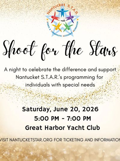 Shoot for the Stars will be held on Saturday, June 20, 2026 at 5:00 p.m. at Great Harbor Yacht Club. Our event offerings include the premiere viewing of our impact film, hors devours and refreshments, a live and silent auction and the invaluable opportunity to meet and hear from some of our Stars.